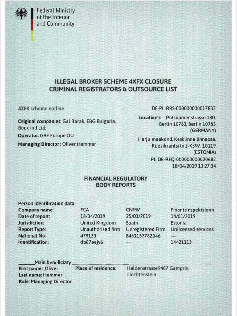 Sipas dokumenteve të publikuara, një nga figurat kyçe që lidhet me këtë bankë rezulton të jetë Oliver Hemmer, i identifikuar si drejtues menaxhues i kompanisë GRF Europe OU, e cila operonte për llogari të 4XFX, një kompani e lidhur me shtetasin izraelit Gal Barak.