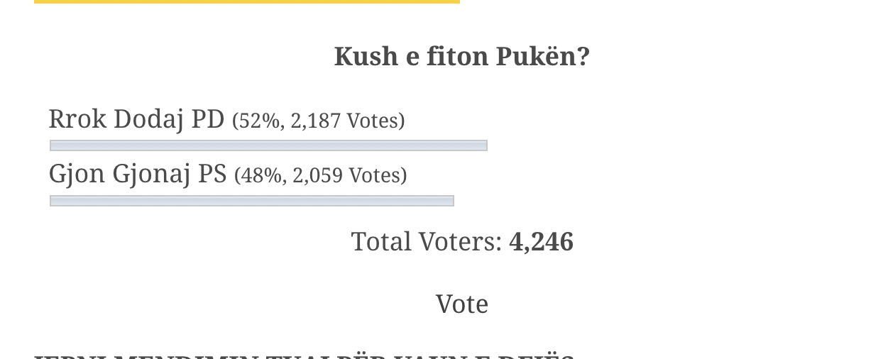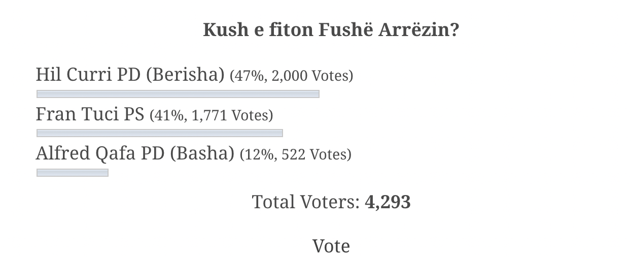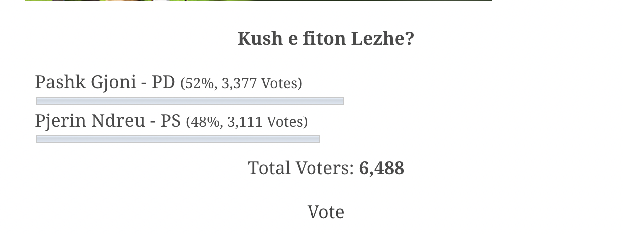 Prej disa ditësh Gazeta Jonë po zhvillon sondazhe në disa bashki të vendit duke marrë një vëmendje maksimale nga lexuesit. Aktualisht Gazeta Jonë po shënon rekord leximesh nga e gjithë Shqipëria duke u renditur në krye të mediave online më të lexuara në Shqipëri.