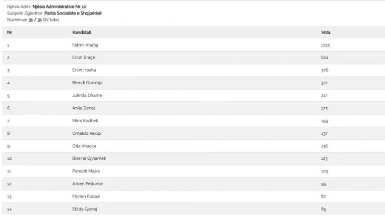 Në njësinë bashkiake nr. 10, një prej dy njësive ku u zhvillua numërimi elektronik rezulton se socialistët kanë preferuar në masë ish ministrin e Brendshëm, Fatmir Xhafaj.