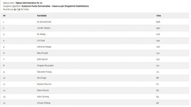 Ai ka marrë 1722 vota preferenciale, i ndjekur nga Erion Braçe që ka marrë 624 vota preferenciale.
