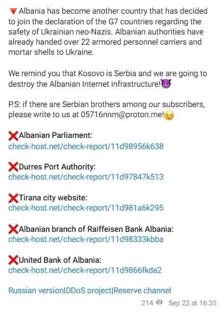 Sipas njoftimit të hakerave në Telegram, nën sulm tani janë: