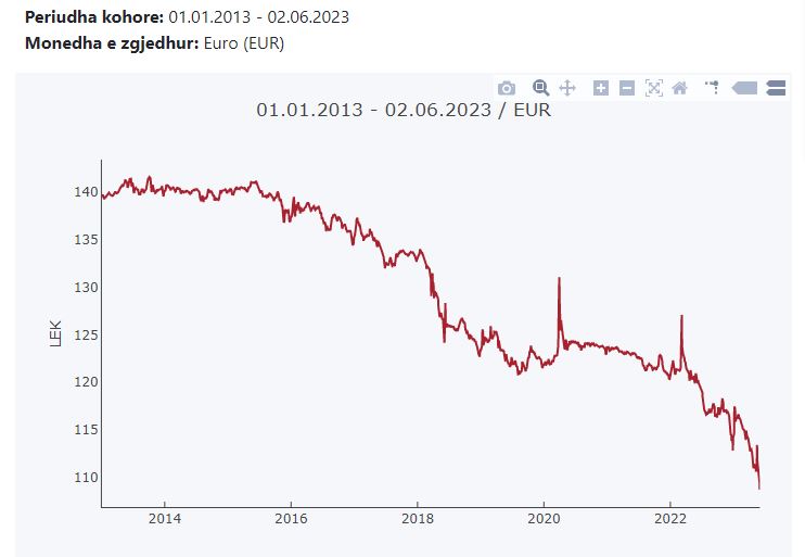 Të dhënat zyrtare nga Banka e Shqipërisë tregojnë se që nga fillimi i vitit euro ka humbur mbi 9 pikë ndaj lekut. Në fillim të janarit, monedha europiane këmbëhej me mbi 117 lekë, por sot kursi ka rënë në 108.7 lekë. Tani pragu i këmbimit 1 euro me 100 lekë nuk duket më tabu. Aq më tepër që sezoni i lartë turistik duhet ende të fillojë, që do të thotë se në treg do të ketë edhe më shumë valutë.