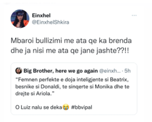 “Mbaroi bullizmi me ata që ka brenda dhe ja nisi me ata që janë jashtë?”, ka shkruar ajo në Twitter.