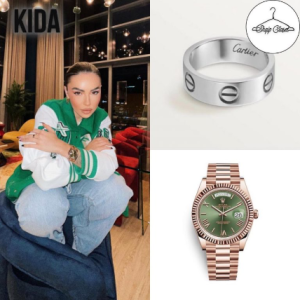 Vathët e saj janë të firmës “Cartier” dhe kushtojnë 380 euro, derisa edhe unaza që ka vënë është e po kësaj firme, por që kushton shumë më shtrenjtë, saktësisht 1 mijë e 920 euro.
