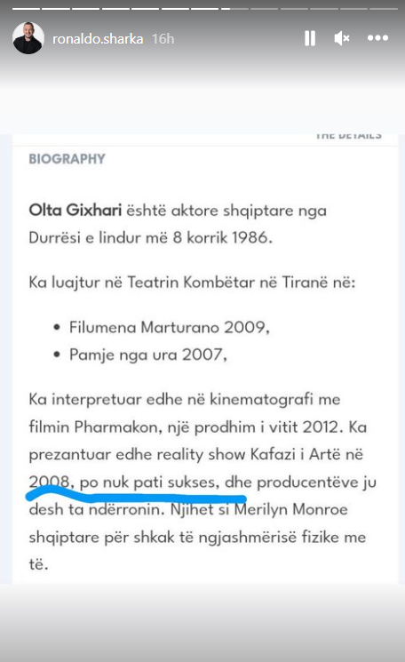 Pas daljes nga shtëpia e “Big Brother VIP”, Ronaldo ka filluar t’u rikthehet deklaratave në të cilat nuk ka mundur të jetë prezent gjatë qëndrimit të tij, një nga momentet që atij i ka bërë përshtypje, ka qenë një koment i Olta Gixharit.
