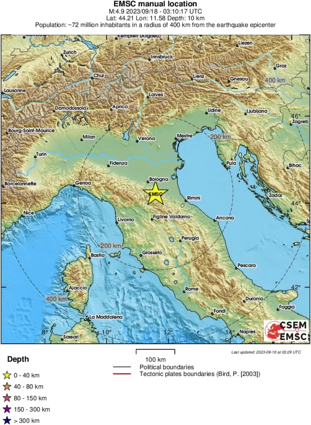 Sipas Institutit Sizmologjik Euro – Mesdhetar, epiqendra e tërmetit ishte 37 km. në verilindje të Bolonjës.